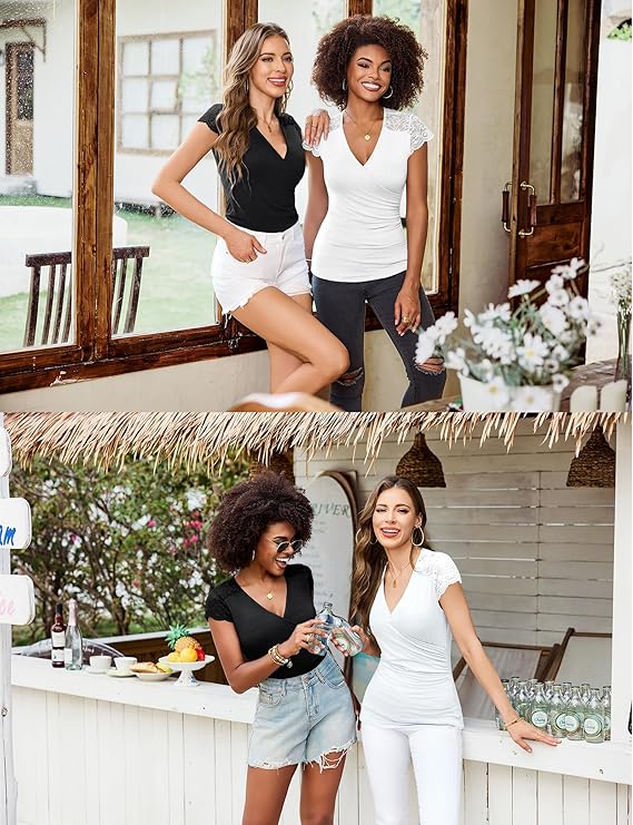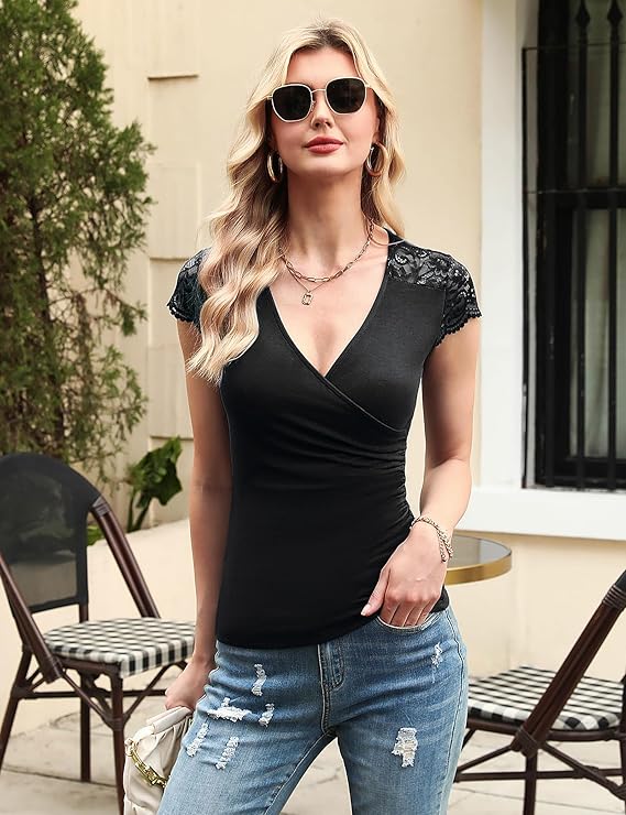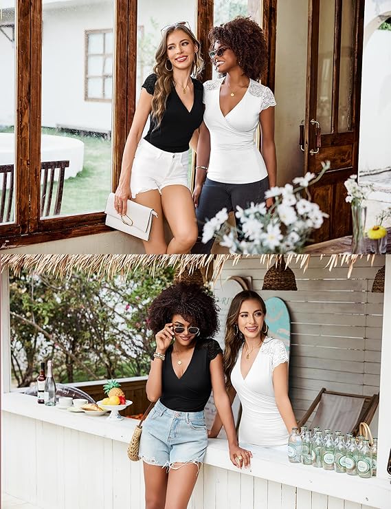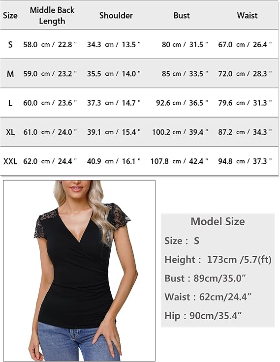 • Features: blouse tops women’s elegant skims design, V-neck that highlights the collarbone, simple plain style, short sleeve cuffs and lace, so you can show off your body changes while maintaining fashion and elegance.