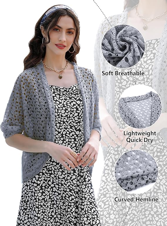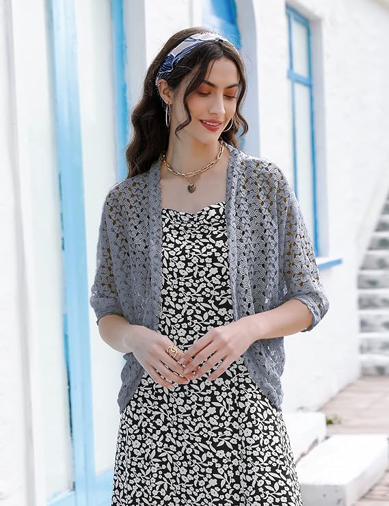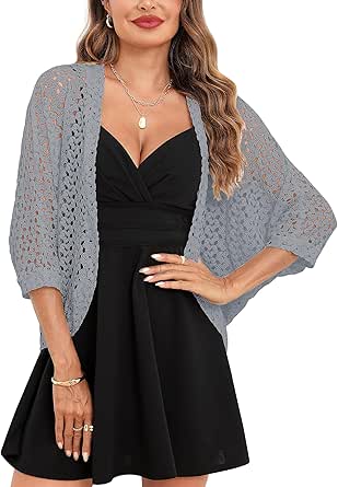 Gyabnw Women’s Elegant Bolero Lace Jacket Festive Cardigan Short Blazer Festive Bolero with 3/4 Sleeve for Evening Dresses Cocktail Dress