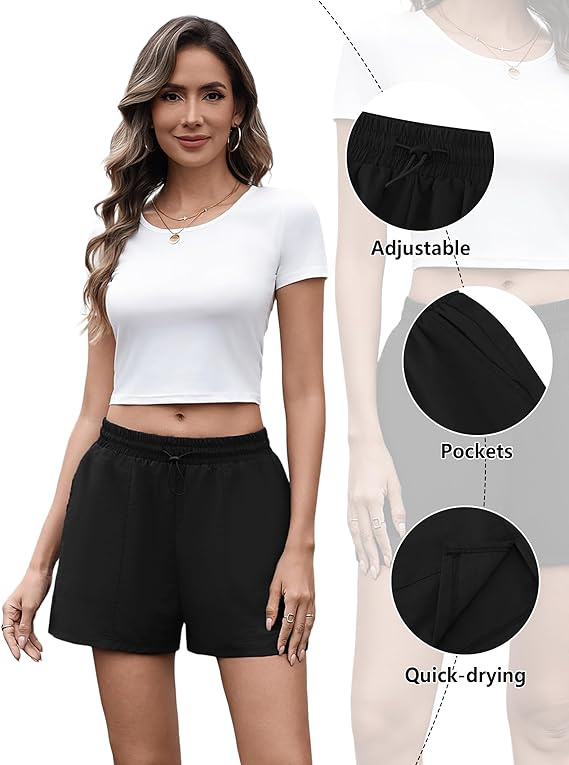 - STYLISH AND COMFORTABLE These sporty yet stylish shorts come in black, grey, green and blue and can be easily paired with any top for a chic look